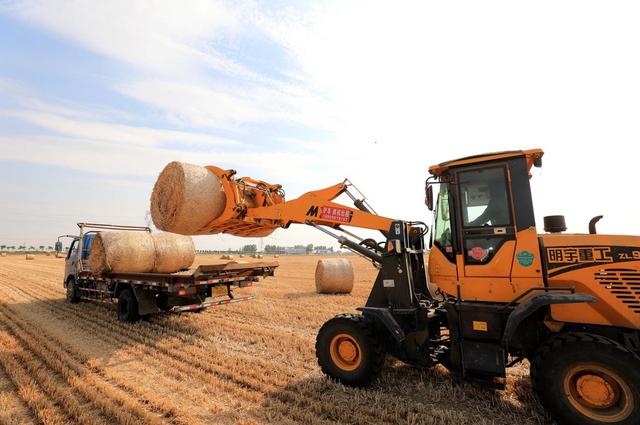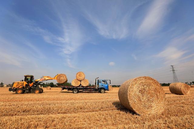 2022年6月3日,安徽省淮北市濉溪县孙疃镇杨柳村秸秆临时存放点,濉溪浦发农林生物质发电有限公司工人们正在紧张将成捆的秸秆转运到电厂。 麦收时节,濉溪浦发农林生物质发电有限公司建立秸秆收储转运体系,科学调度打捆机、运输车辆协调作业,确保秸秆及时打捆离田,加快秸秆离田收储工作,日均收储利用秸秆1000余吨,确保实现秸秆有效利用和夏种备耕顺利开展。