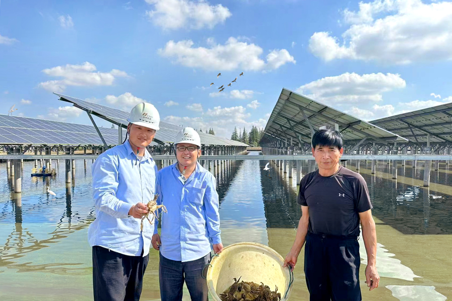 项目方给塘里的大闸蟹起了个时尚的名字——“零碳蟹”。“零碳蟹长成后,个头较传统养殖方式增大20%,养殖收益较以往提升近3倍,大幅增加了村镇集体经营性收入。” 华电上海公司党委书记、执行董事顾金芳介绍道,该项目每年可产生近1.4亿千瓦时的绿色电能,可节约标煤约4.3万吨,减排二氧化碳近12万吨,相当于每年满足约18万户普通家庭的用电需求。